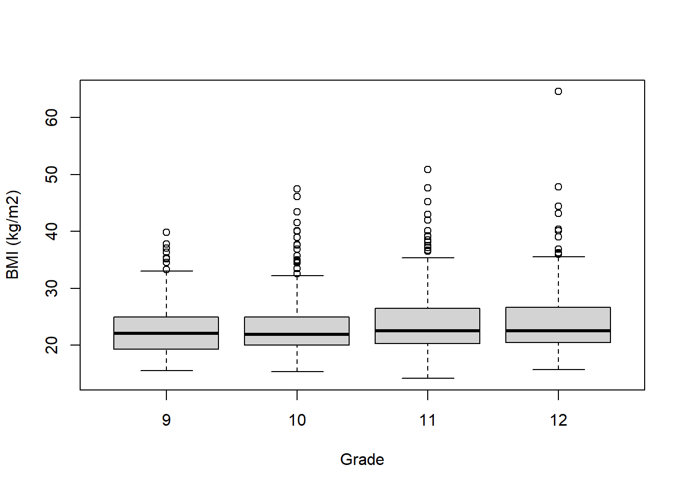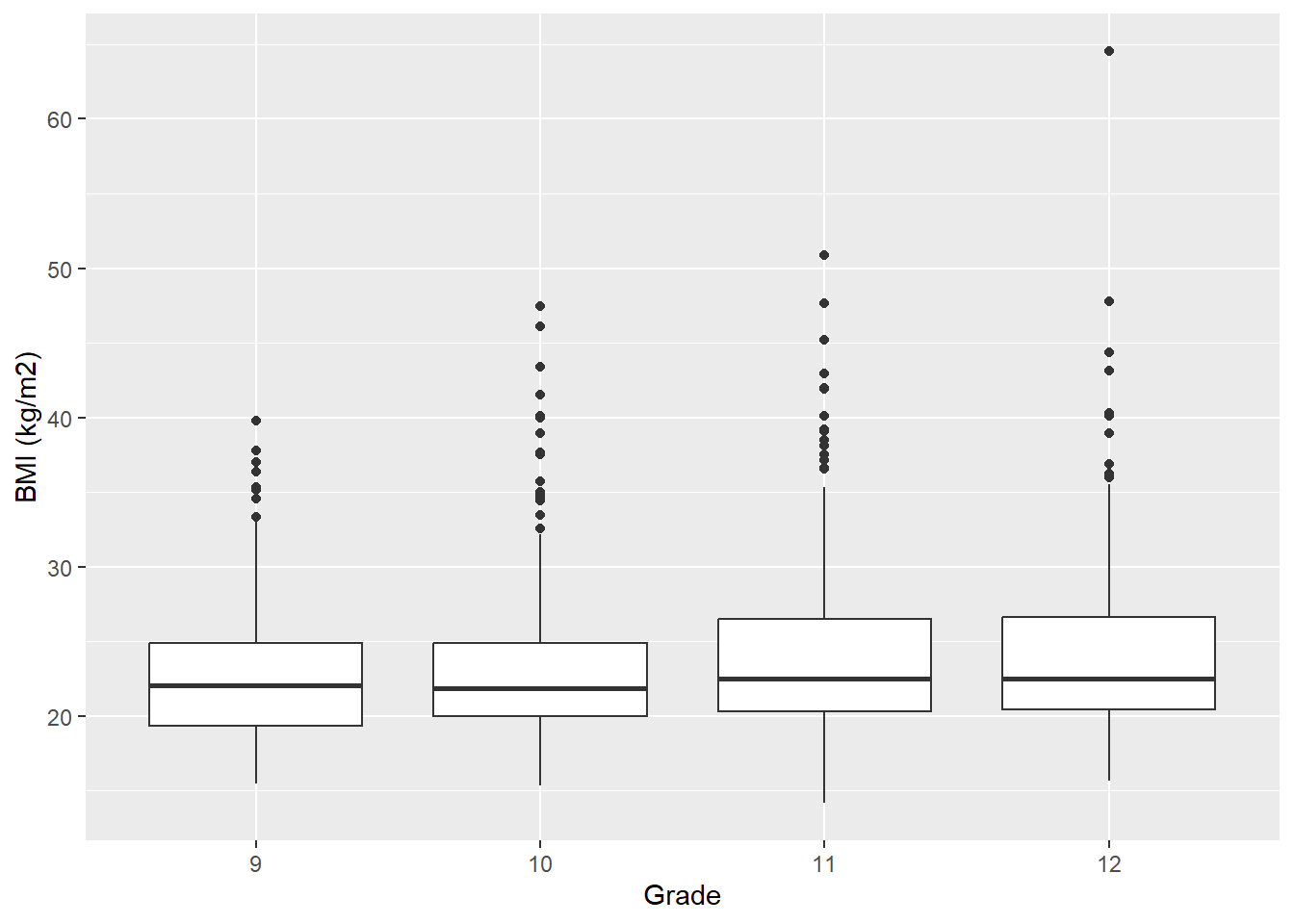 labs(y = "BMI (kg/m2)", x = "Grade")